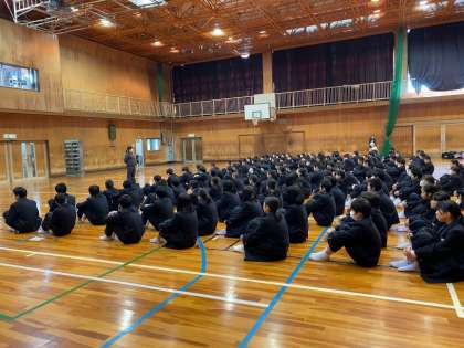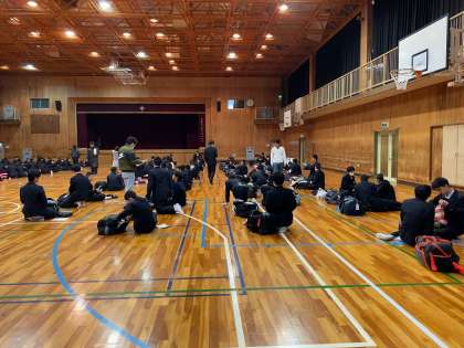 2月10日(月)3・4限、2年生は、本校体育館で、2月12日(水)〜14日(金)実施の『修学旅行』事前指導として、荷物の点検や活動班の確認などを行いました。