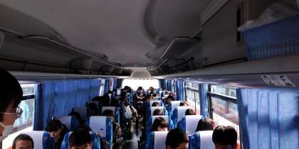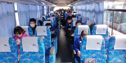 バス車内で昼食をとった後、長野県白樺湖の宿舎へ向かいます。