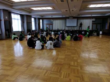修学旅行2日目は、雨天のため、『スキー講習』は室内で行いました。