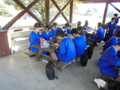 3年生では、校外学習として信太山青少年野外活動センターで野外炊飯を行いました。