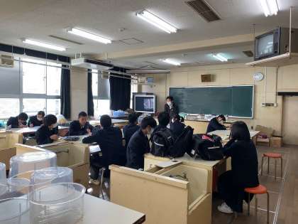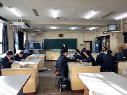 2月19日(水)放課後、本校理科室で、3年生は公立高校特別選抜の事前指導を行いました。進路担当の先生より全体説明後、受検校ごとに、当日の持ち物、集合時間、交通機関等を確認しました。