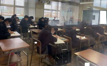 1・2年生のみなさん、今年度総まとめのテストです。日頃の授業や家庭学習の成果を発揮してがんばりましょう。