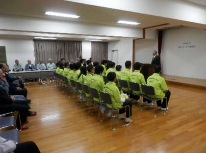 地域活動協議会のみなさんと 市会議員様、淀川区長様、淀川消防署長様を来賓に迎え、励ましの言葉をたくさんいただきました。加島・三津屋の活動協議会からは、生徒が着用するユニホームまで作っていただきました。ありがとうございました。