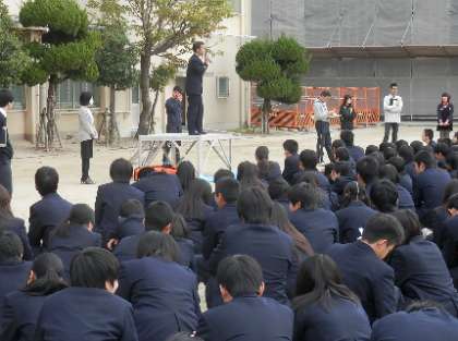 期末テスト終了後の3限目に火災を想定した避難訓練を行いました。