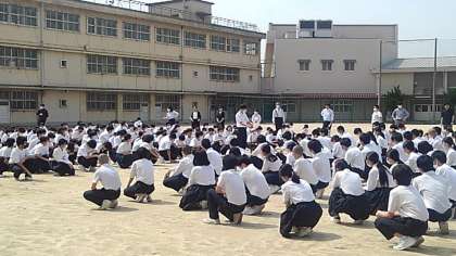 久しぶりに全校生徒が集まって集会が開かれました。着任式に続き始業式をグランドで行いました。土日の雨の影響もあって、湿度が高かったのもあり、体調を崩す生徒も多く出ました。今日から部活動も始まりますが、自分が思う以上に体力は落ちています。無理せずに少しずつ体を慣らしていきましょう。1年生は、中学生になって初めてクラス全員での授業が始まりました。