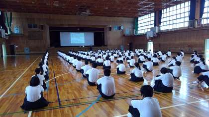 本日6時間目、進路指導主事の中島先生から高等学校の種類などについて説明がありました。進路について詳しく載せている「進路だより」もNo.1〜No.8まで発行していますので必ず読んでくださいね。