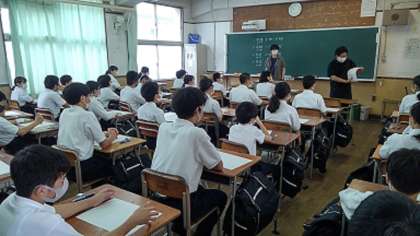 テスト前には、テストの受け方について最終の確認をしてテストが始まりました。1年生は、ちょっと緊張気味です。明日の給食はありません。