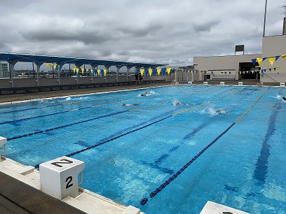 写真上段は、2年生男子の保健体育『水泳』の授業の様子です。