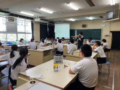 写真中・下段は、2年生の理科『実験〜水に電流を通したときの変化』の授業の様子です。