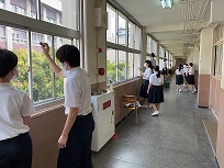 8月7日(金)、授業後、各学年で『学年集会』を行い、夏休みの過ごし方などについてお話がありました。その後、『大清掃』を行い、校舎の隅々まで、美しくしました。