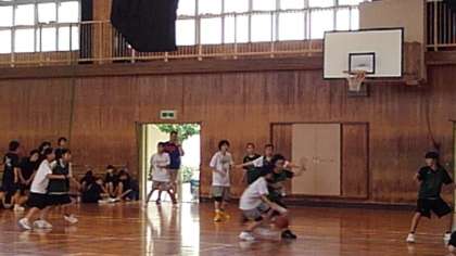 短いお盆休みが終わって、各部活動とも活動を再開しています。今日は、グランドで野球部が、体育館では女子バスケットボール部が練習試合を行っています。
