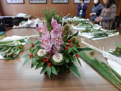 本日は、お正月をテーマに花を活けこみました。2階廊下事務室前に展示していますが、気持ちが引き締まる想いがなんとなく漂います。