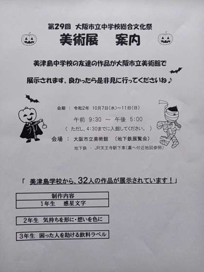 「第29回大阪市立中学校総合文化祭 美術展」案内