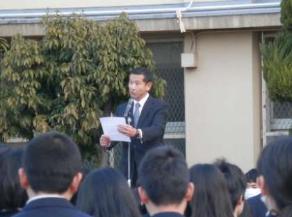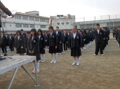 朝、全校集会を行いました。阪神淡路大震災から20年目を迎え、「今、私たちにできることは?」「今、しなければならないことは?」について、考える時間をとりました。