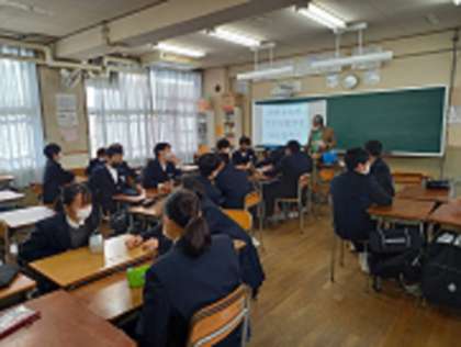 6時間目、2年生では高校の先生をお招きして高校出前授業を実施しました。最初は、少し緊張していましたがしばらくすると緊張もほぐれ授業に興味を持って取り組んでいました。