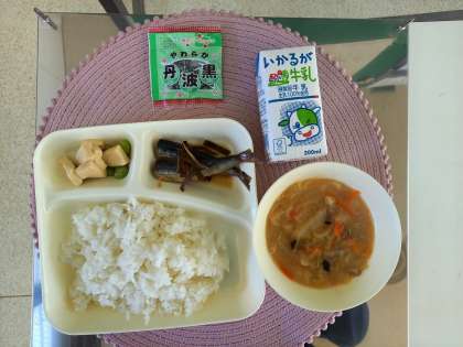 いわしには、主に体の組織をつくるもとになるたんぱく質やカルシウムが多く含まれています。日本でもっとも多く出回っているいわしは「マイワシ」です。大きいものは25cmほどになり、体に黒い点が7個ならんでいるのが特徴です。給食では、フライ・煮魚・つみれ汁・ごまめ・ミニフィッシュなどで登場しています。