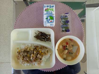 正月には新年を祝い、一年の健康を願って食べる料理がたくさんあります。今日の給食には「ぞう煮」と「ごまめ」が出ました。