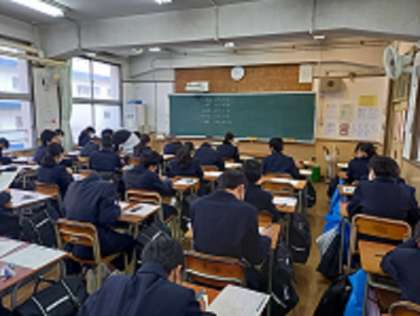 2年生はチャレンジテスト、1年生はチャレンジテストとチャレンジテストplusの試験が始まりました。1年生にとっては、初めて1日5教科のテストに臨みます。写真は、試験の準備をしている1年生の様子です。美中生がんばれ!