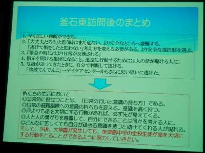 淀川区役所において、午前10時より淀川区の各地域防災リーダーの方々が集まる研修会が行われました。そこで、本校の防災リーダーの代表者が、これまでの活動報告を行いました。昨年7月から始まった防災リーダーの体験学習の様子をパワーポイントを使って報告しました。
