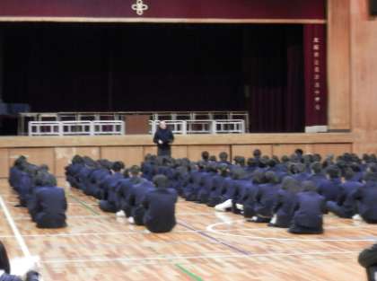 3年生は、明日行われる私立入試に向けて、最後の諸注意を行いました。