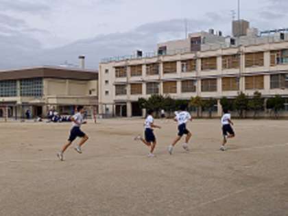 4時間目グランドでは、2年生男子が体育の授業で長距離走のタイムを計っています。