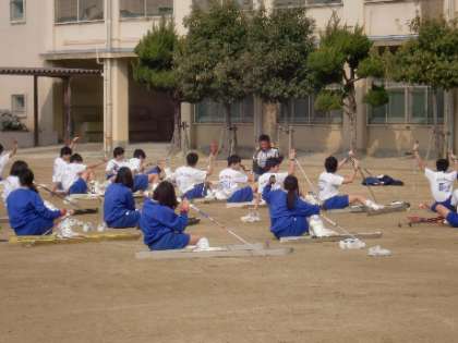 2年生では、体育の時間に修学旅行で着けるスキーの着脱について学習しました。