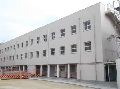 昨年11月から行っていました1年校舎の壁面の補修と塗装が終了し、校舎にかかっていた足場がとれました。外装がきれいな校舎に生まれ変わりました。来年は、現在の2・3年校舎の外壁を補修する予定です。