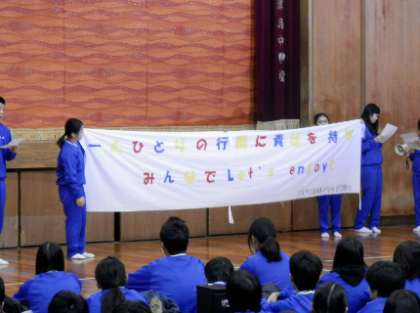 出発式では実行委員の代表から挨拶があり、目標が横断幕で掲げられました。