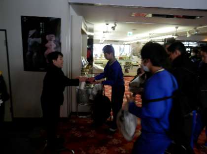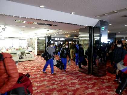 入館時には、アルコール消毒も行います。すぐにスキーウエアに着替えてね!