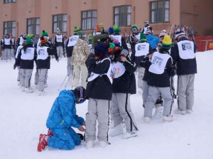 いよいよ1回目の講習が始まりました。まずは、スキーに慣れるところから・・・