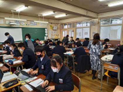 1限目3年生において英語科研究授業がありました。修学旅行や京都への校外学習のことを思い出しながら、PCの翻訳ソフトを使って英作文にチャレンジしました。