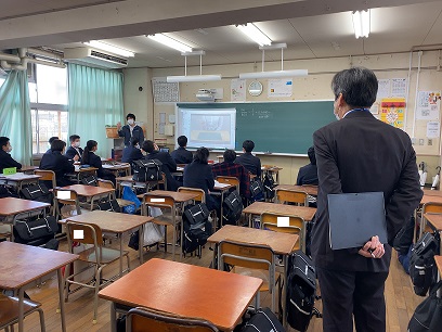 3月3日(水)1限、大阪市教育センターより『学力向上推進事業』の指導実践チームが訪問され、2年生数学科の「確率」の授業を見学、指導助言をいただきました。「わかりやすい授業づくり」に全校をあげて取り組んでいます。