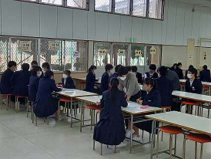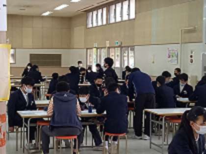 明日の公立高校一般選抜に向けた事前指導が6時間目に食堂で行われました。それぞれが出発時間や学校までのルートを確認しました。3年間の集大成です。しっかり力を出し切りましょう。