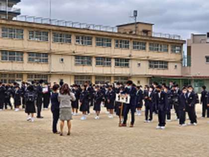 今年度も、感染防止のため簡素化した入学式となりました。教室では、担任の先生の自己紹介ののち、教科書やプリントの配布が行われました。新入生の次回登校は、4月8日(木)始業式です。8時20分には正門を通過し、8時25分には着席しておきましょう。4月8日(木)の始業式に持ってくるもの、回収するものは、配布した学年通信に載せてありますので忘れないようにしましょう。