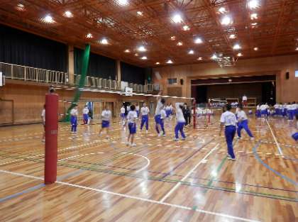 総合の時間を活用し、球技大会を行いました。女子がグランドでサッカー、男子が体育館でバレーボールをそれぞれ学級対抗で試合を行いました。