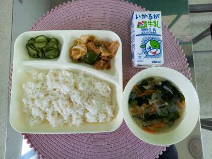 ホイコウロー:ホイコウローは中国の四川料理(しせんりょうり)の一つです。中国料理では、材料を煮たあとに鍋にもどし、いためて仕上げることを、「回す鍋(なべ)」と書いて「回鍋(ホイコウ)」といいます。また、豚肉のことを「肉(ロー)」というので、「回鍋肉(ホイコウロー)」という名前がつきました。今日の給食では、豚ばら肉をゆでてから、ほかの材料と一緒にいためています。