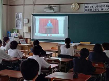 今日は、登校後すぐにオンラインによる全校集会を行いました。校長先生からのお話の後は、前期学級役員の認証式が行われました。今までは、声のみの放送でしたが、放送で自分のクラス代表が認証状を受け取るとクラスからは拍手の音が聞こえました。