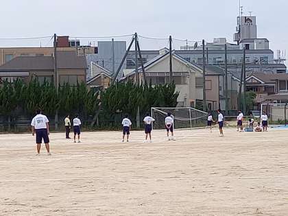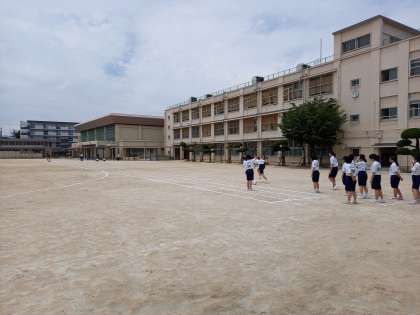 2年生がグランドでは体力テスト(50m走・ハンドボール投げ)を行っています。