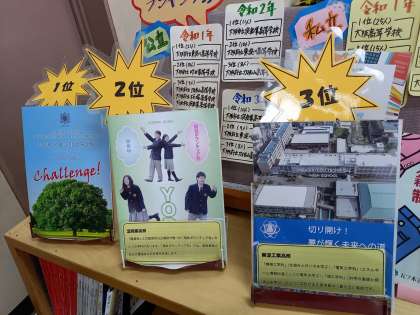 図書室内に、高校の学校案内パンフレット(昨年度分)を集めた進路ブースが誕生しましたがさらに充実。今年のパンフレットが届いたら順次更新していきます。
