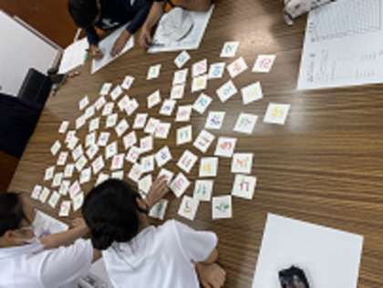 放課後、国際クラブの活動が行われました。今日は、ハングルの文字を教わったのちにハングルで書かれたカードを使ってのカルタを行いました。