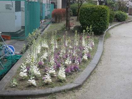 じっと我慢していた葉ボタンが見事に大きく成長しました。 桜もほぼ満開です。↓