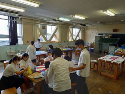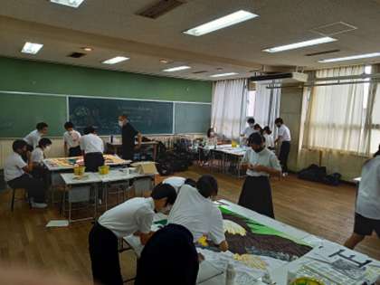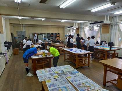 教育懇談期間中に、体育祭に向けての「学級旗」づくりが行われています。完成品は、体育祭までお見せできませんが、どの学年も、どのクラスも素晴らしい出来栄えです。
