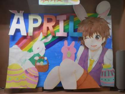 美術部が毎月製作に取り組んでいる4月のディスプレイを紹介します。