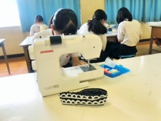 家庭科部の活動では、製作中のペンケース第1号が完成しました。