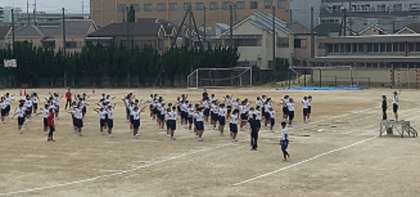 3年生にとっては最後の体育祭。グランドでは3年生が、入退場の練習をしています。