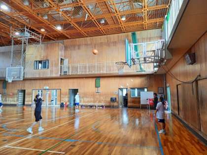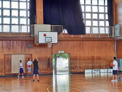 写真は、バレーボール部・女子バスケットボール部の活動の様子です。