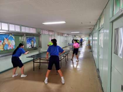 写真は、卓球部・吹奏楽部・野球部の活動の様子です。