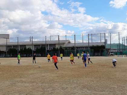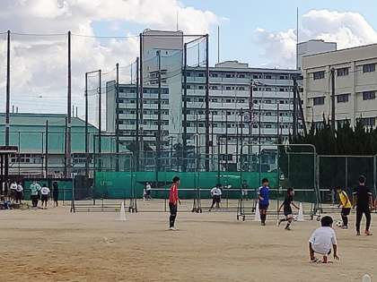 写真は、ソフトテニス部・サッカー部の活動の様子です。