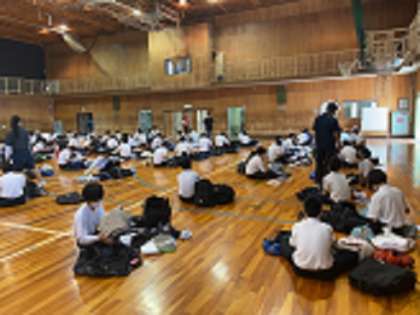 3年生は、明日から3日間の予定で行く修学旅行の事前指導を体育館で行いました。体育館では、生活班やバス乗車・選択体験活動班への並べ替えや、荷物の確認、しおりの最終読み合わせなどを行いました。