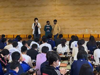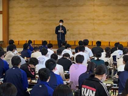 「ごちそうさまでした」の後、修学旅行実行委員会から昨日の反省点についての報告がありました。